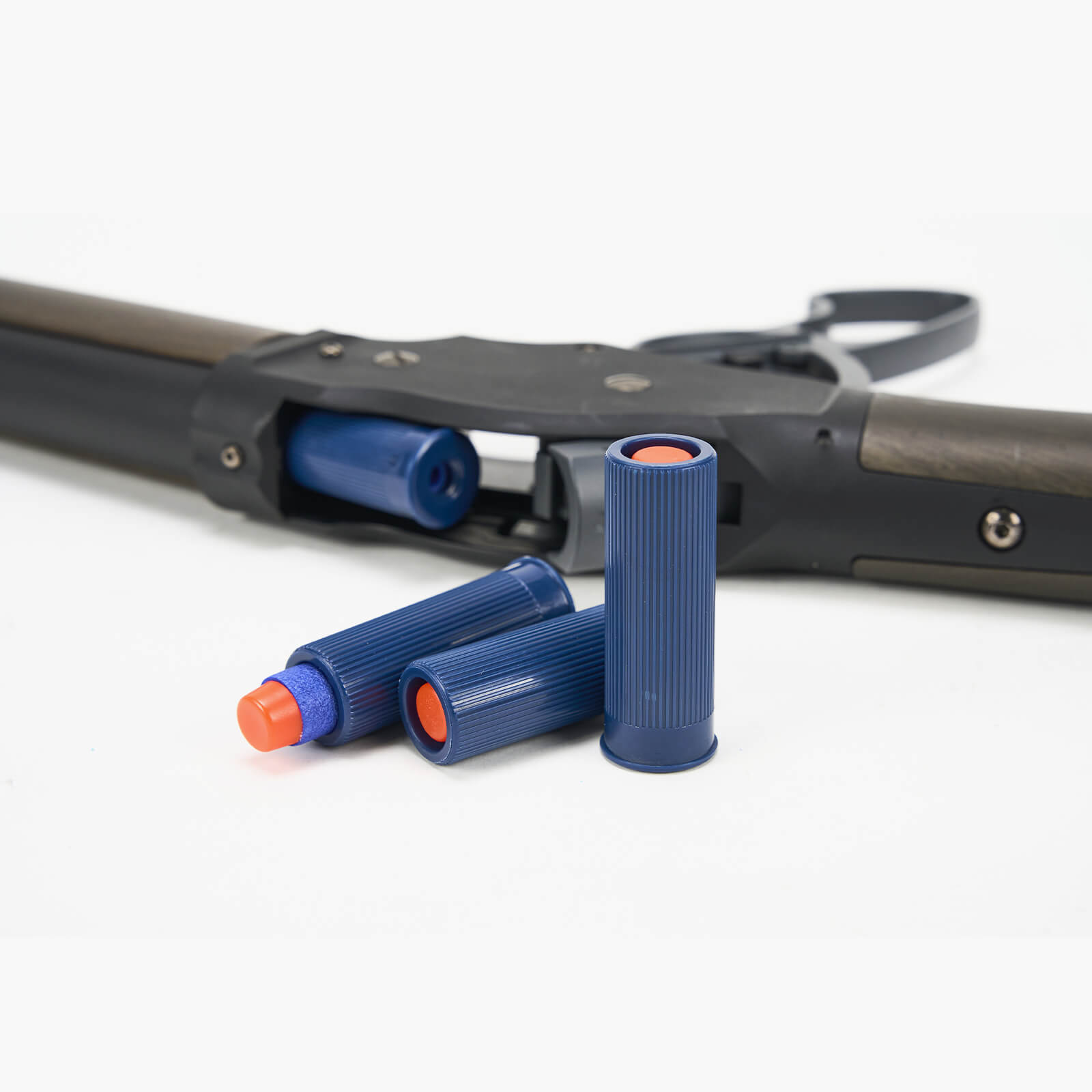 The simulation reproduction of this nerfty shotgun is very high, holding it in your hand, you can feel the battle scene in the Terminator, and the details of the wood grain on the gun body are finely depicted. Moreover, It is worth mentioning that the way of loading and shelling this M1887 nerfty blaster is also very special. You need to pull the trigger guard to open the magazine loading port and shoot After that, press the trigger then shells will pop up automatically.
